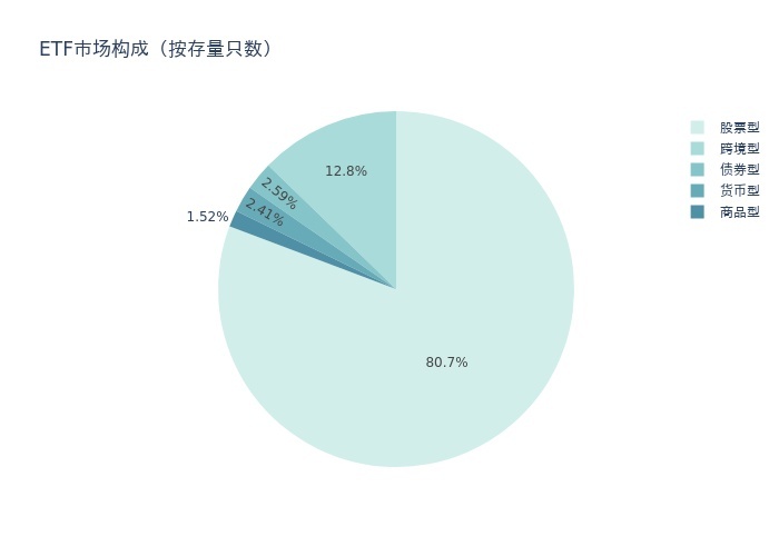 上周市场上存量ETF共计1121只,其中股票型ETF905只,债券型ETF29只,货币型ETF27只,商品型ETF17只,跨境型ETF143只。