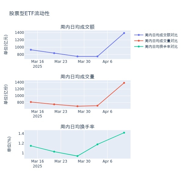 流动性方面,上周股票型ETF市场日均成交额增加84.7%,日均成交量增加96.4%,换手率增加0.24%。