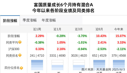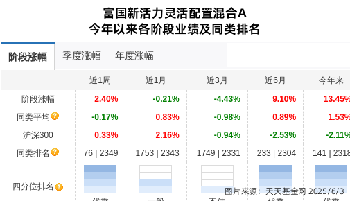 其中,富国新活力灵活配置混合A今年以来收益率13.45%,同类排名141(总2318),富国质量成长6个月持有混合A今年以来收益率15.07%,同类排名379(总4568)。